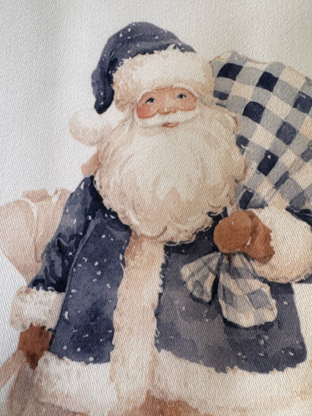 You will love this beautiful kitchen tea towel featuring a blue and tan watercolor design of Santa holding his gift sacks. Slightly non traditional in color but so gorgeous in person. Perfect for a thoughtful hostess gift or just for you.